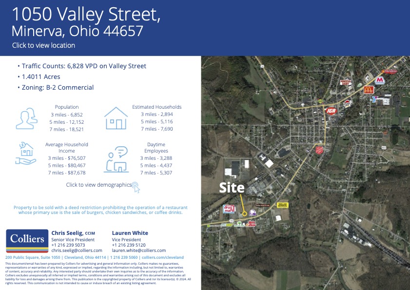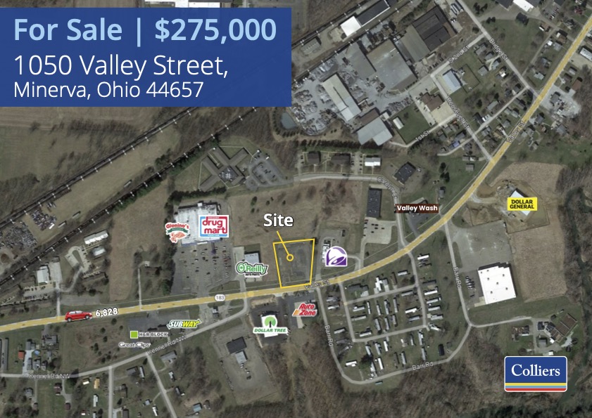 Commercial land for sale, 1.4 acres, $275,000. For more information, contact Colliers. https://www.colliers.com/en/properties/for-sale-275000/usa-1050-valley-st-minerva-oh-44657-usa/usa1145156#RelatedDocs